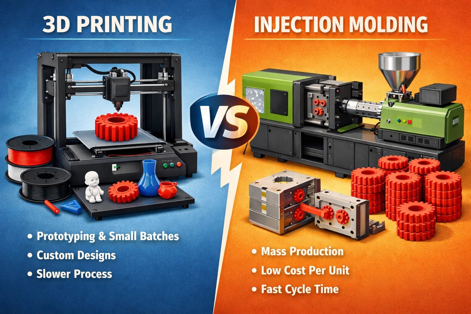 De meeste mensen denken dat het een simpele keuze is tussen de “nieuwe school” (3D-printen) en de “oude school” (spuitgieten). Maar eerlijk? Zo zwart-wit is het zelden meer.