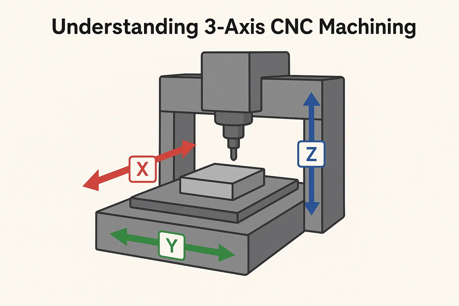 3-assige CNC -machines verplaatsen een snijgereedschap langs drie lineaire paden (x, y, z), ideaal voor eenvoudiger, platte onderdelen en basiskenmerken.