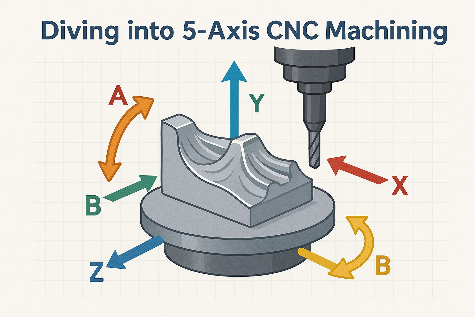 5-assige CNC -machines voegen twee rotatie -assen toe, waardoor het gereedschap het werkstuk vanuit vrijwel elke hoek kan benaderen.