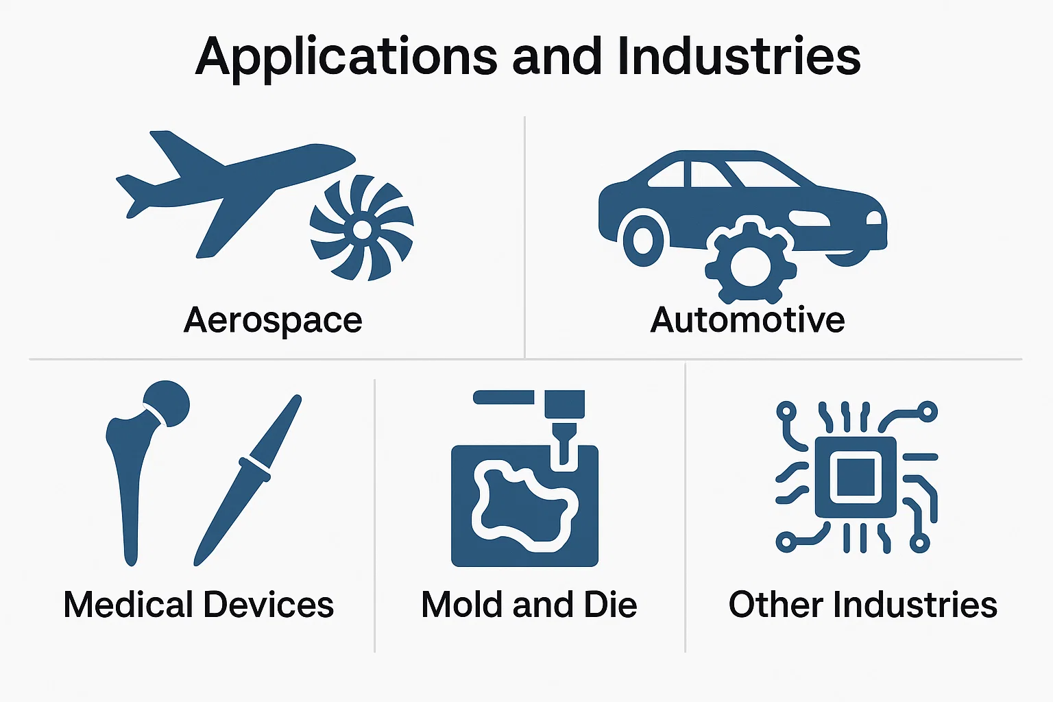 Gezien de geavanceerde mogelijkheden, is 5-assige CNC-bewerking onmisbaar in industrieën die de hoogste niveaus van precisie en geometrische complexiteit vereisen. De toepassingen omvatten een breed bereik: