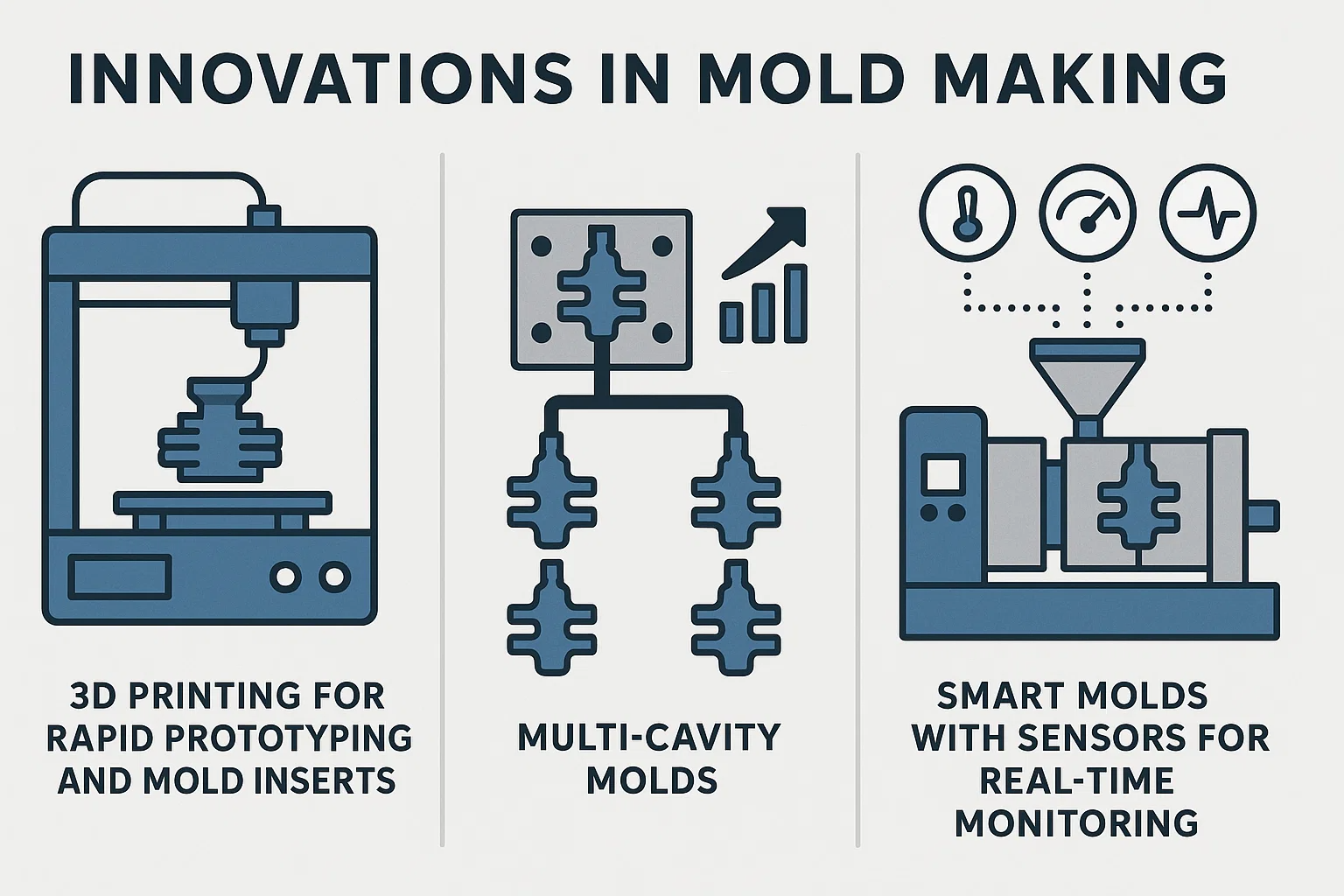 Misschien is een van de meest transformerende innovaties de integratie van 3D -printen (additieve productie) in de workflow met het maken van schimmels. Hoewel directe 3D-printen van volledige productiemogels nog steeds beperkt is vanwege de vereisten voor materiaalsterkte en oppervlakte-afwerking, is de impact ervan op prototyping en gespecialiseerde schimmelcomponenten enorm: