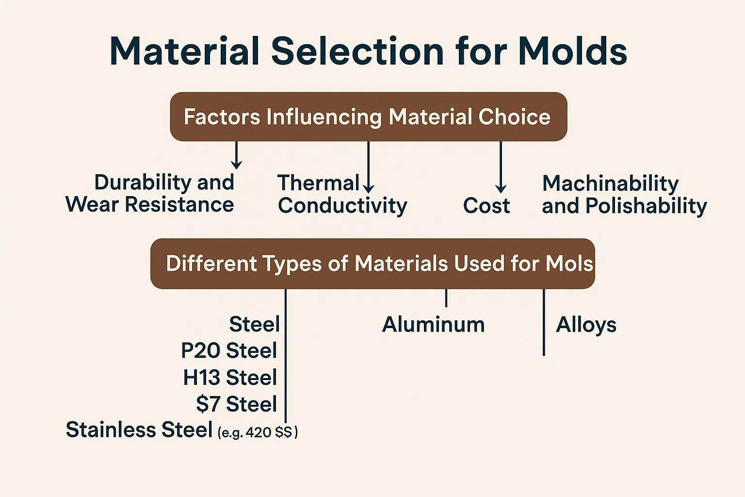 Zodra de ingewikkelde blauwdruk van de schimmel zorgvuldig is ontworpen in het digitale rijk, omvat de volgende cruciale beslissing het kiezen van de juiste materialen voor zijn fysieke constructie. Dit gaat niet alleen over het kiezen van een sterk metaal; Het is een strategische keuze die duurzaamheid, thermische eigenschappen, machiniteit en kosten in evenwicht brengt. Het geselecteerde materiaal zal de levensduur van de schimmel bepalen, het vermogen om consistente delen te produceren, en uiteindelijk de efficiëntie van het gehele productieproces.